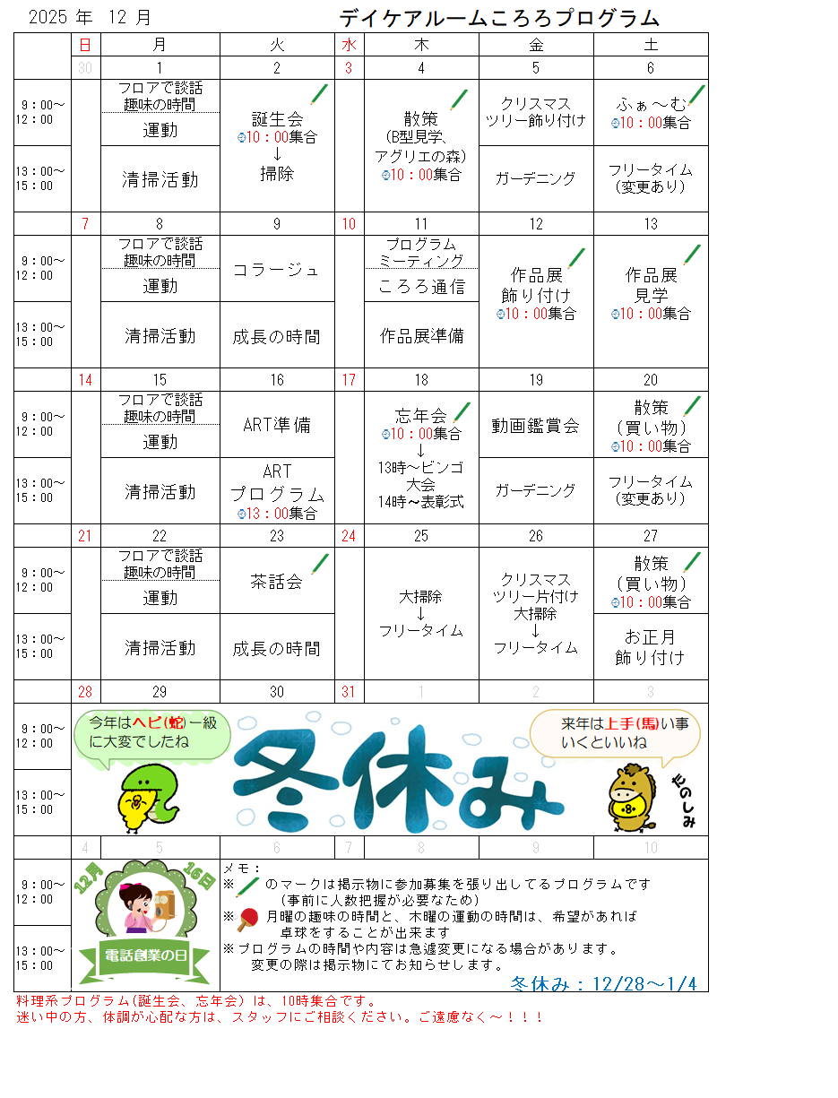 ※下にスクロールすると2025年12月のプログラム表があります