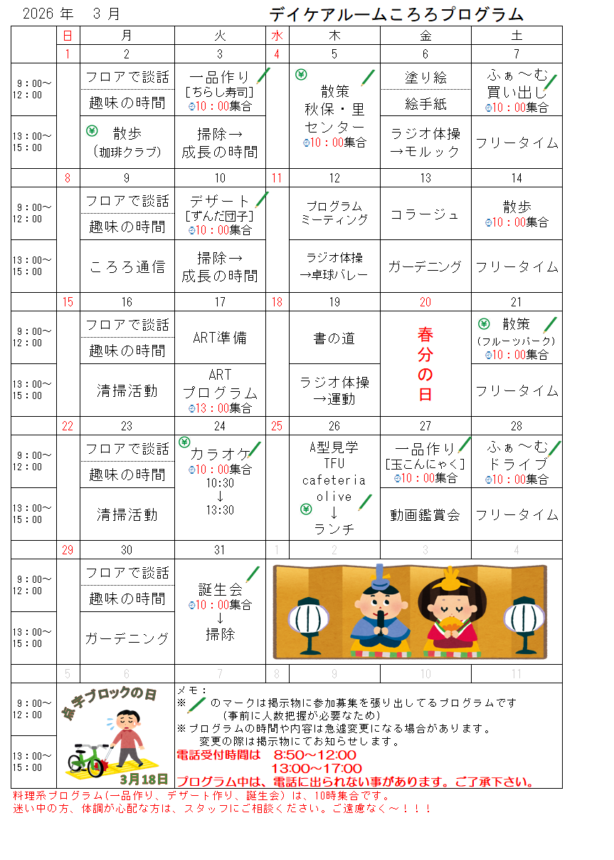 2026年3月 プログラム表